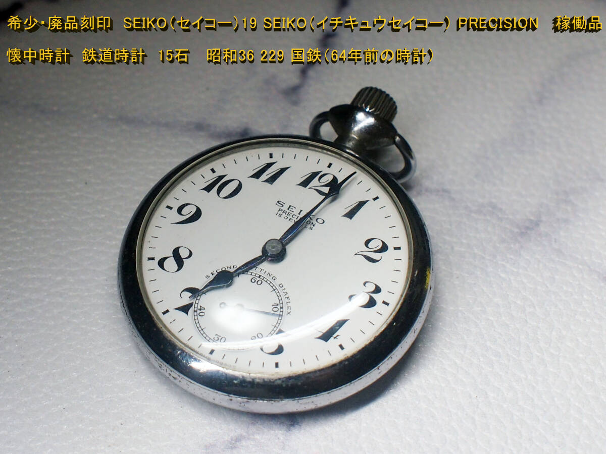 > ¶ 希少・廃品刻印 SEIKO 19 SEIKO(イチキュウセイコー) PRECISION 稼働品 懐中/鉄道時計 15石 昭和36 229 国鉄(64年前の時計)