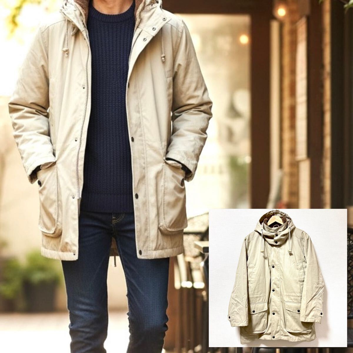 > 防寒性抜群!ダウンライナー付◎【ELSPIA COLLECTION】中綿 ジャケット アウター ブルゾン ベージュ きれいめ 通勤 メンズ L /Y36859SS