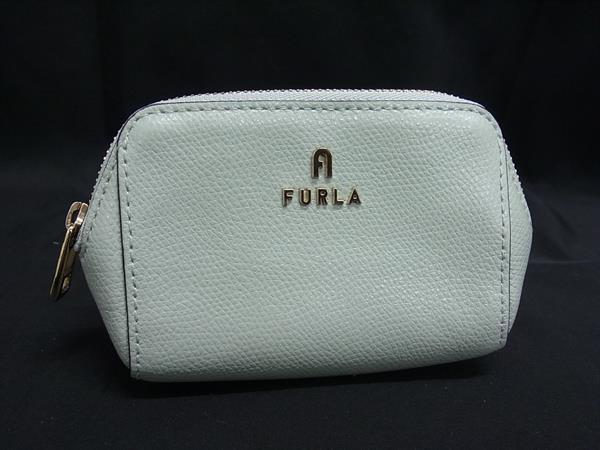 > ■極美品■ FURLA フルラ カメリア S レザー マルチポーチ マルチケース ミニポーチ 小物入れ レディース ライトグリーン系 DI4266