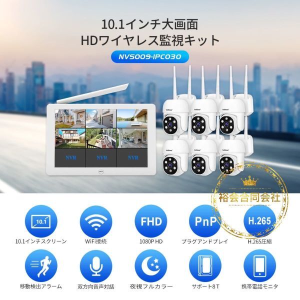 > ★送料無料・30日間保証付き★Srihomeワイヤレス防犯カメラ6台セット 10.1インチLCDモニター暗視撮影 H.265+映像圧縮技術 カメラ増設自由