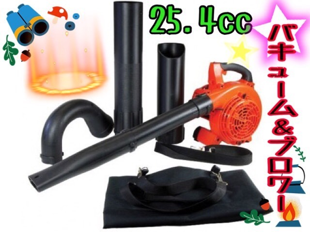- 1台2役 エンジンブロワー バキューム 排気量25.4cc 落ち葉掃除機 エンジンブロアー 送風機 集じん機 集塵機 集草機 吹き飛ばし 吸込み
