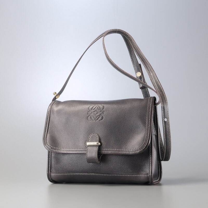- MI1593*スペイン製 VINTAGE LOEWE ロエベ アナグラム レザーショルダーバッグ クロスボディバッグ 2way 鞄 ネイビー