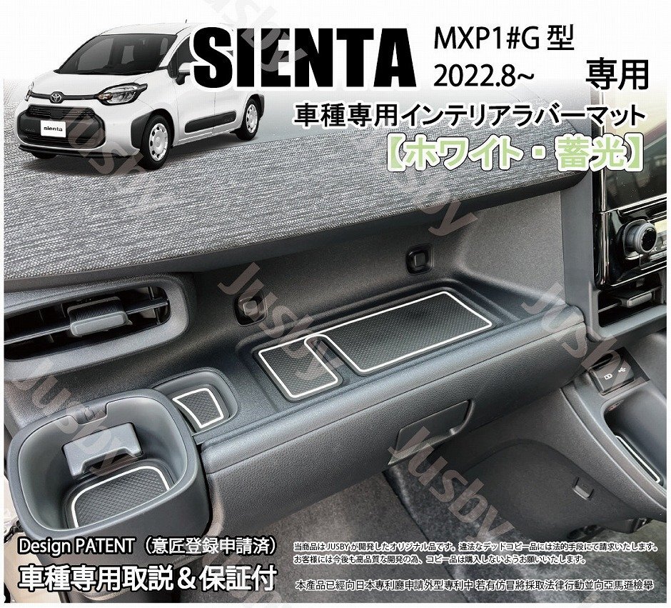 > シエンタ 前期用 (2022-2025.8) 10系 インテリアラバーマット(ホワイト 蓄光) ドアポケットマット sienta MXP1#G型 パーツアクセサリー