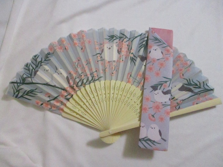 - 送料無料!【 扇子 & 扇子袋 シマエナガ 青 扇子 布タイプ 】21㎝ 天然竹 和 せんす うちわ 浴衣 着物