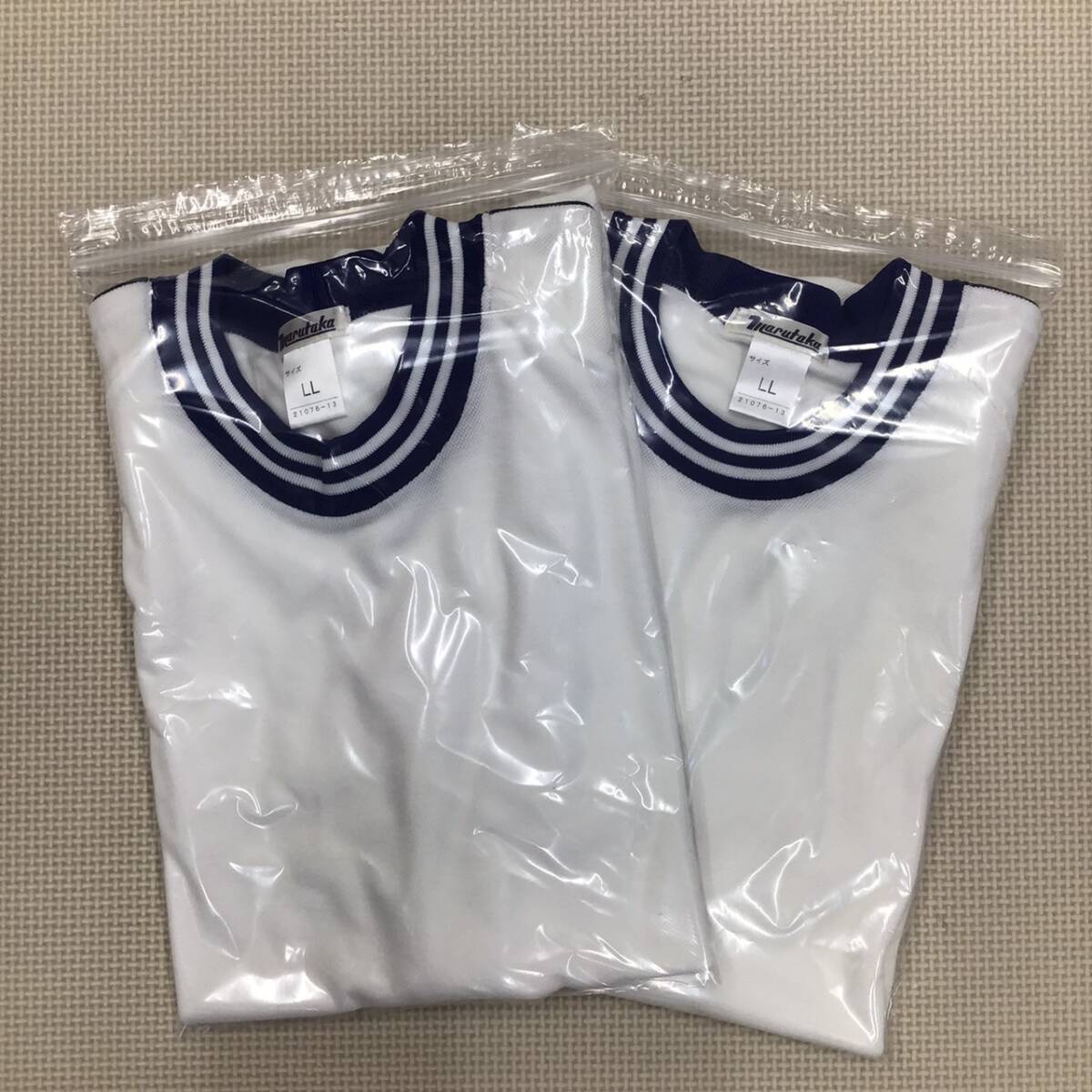> W387 訳あり/未使用品【marutaka】半袖トレーニングウェア サイズ LL 2枚 /白×青×紺/丸襟/体操服/体操着/運動着/中学生/高校生/男女兼用