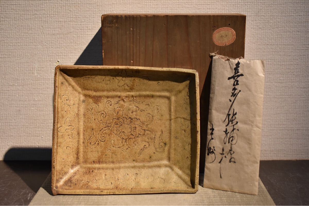 > 【GE】R303【コレクター所蔵品】《名品》時代 黄瀬戸鉢 古文書付/日本美術 美濃焼 骨董品 時代品 美術品 古美術品 sh