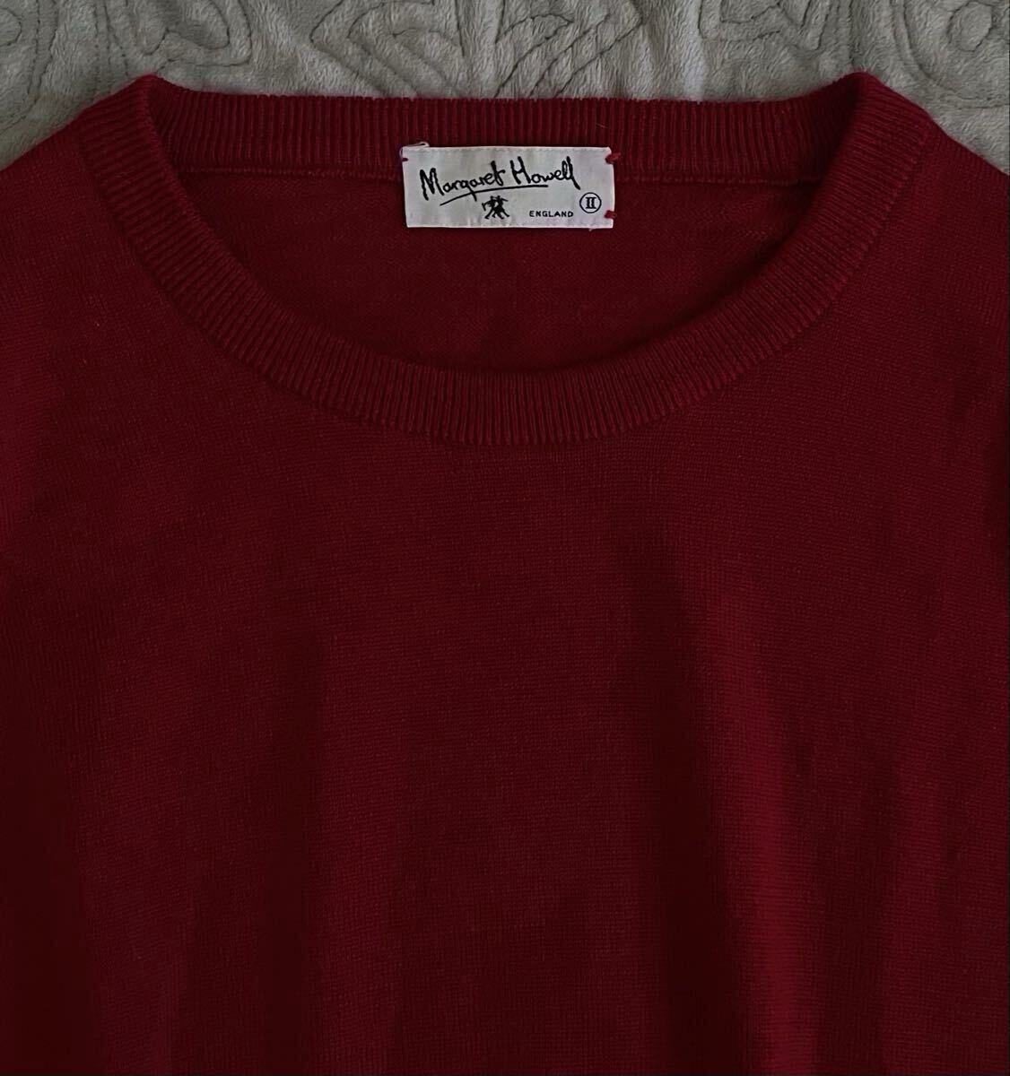 - マーガレットハウエル 半袖 セーター ウール100% 赤 クルーネック 毛 Ⅱ 英国製 旧ロゴ