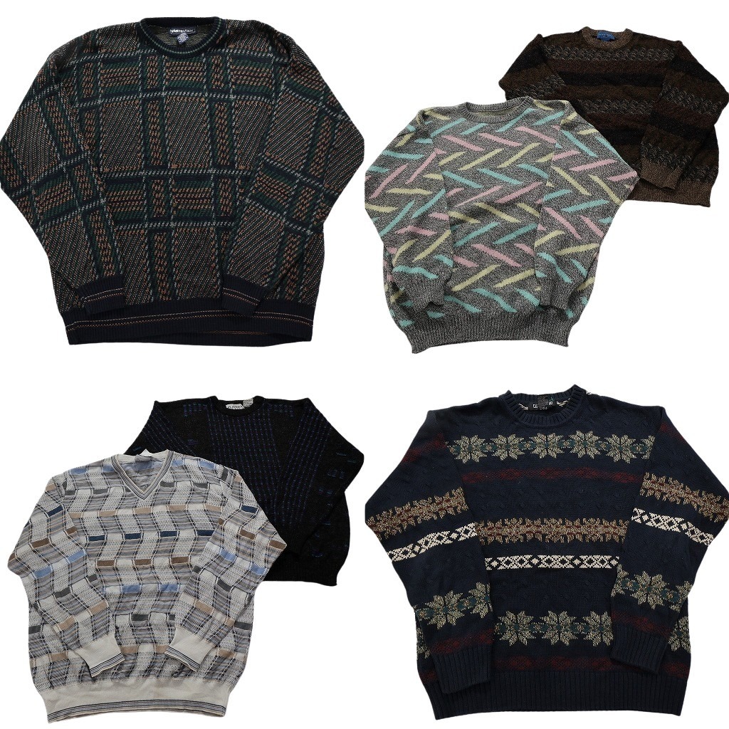 > 古着卸 まとめ売り 総柄ニット セーター 6枚セット (メンズ L ) Vネック 幾何学模様 フェアアイル柄 クルーネック 中古 古着 NC3486