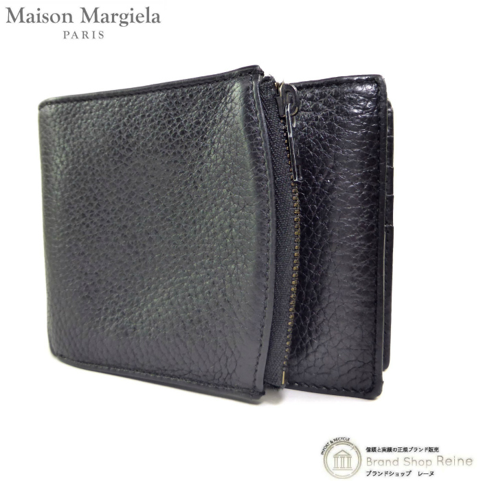 > メゾン マルジェラ (Maison Margiela) レザー ジップ ウォレット コンパクト 二つ折り 財布 S35UI0436 ブラック(中古)