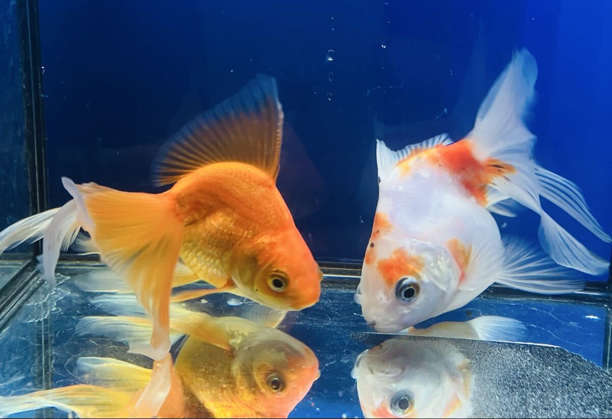 - 【中金 お得飼育2匹セット】桜素赤ローズテール琉金 約13±㎝ ローズテール 中国産金魚 紅白琉金 金魚(H8)