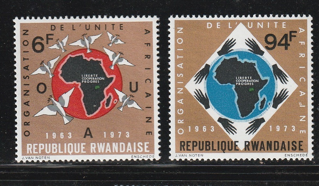 - (ルワンダ)1973年アフリカの統一10周年2種完、スコット評価3.05ドル(海外より発送、説明欄参照)
