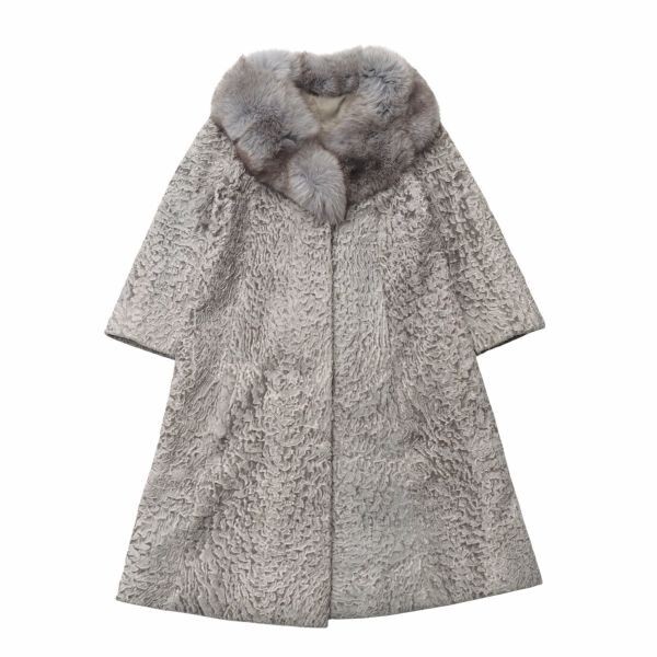 - GS3127◇Moonbat Fur ムーンバット カラクールラム × フォックス ファーコート 毛皮コート ロング丈 グレー系 サイズ11 着丈約104cm