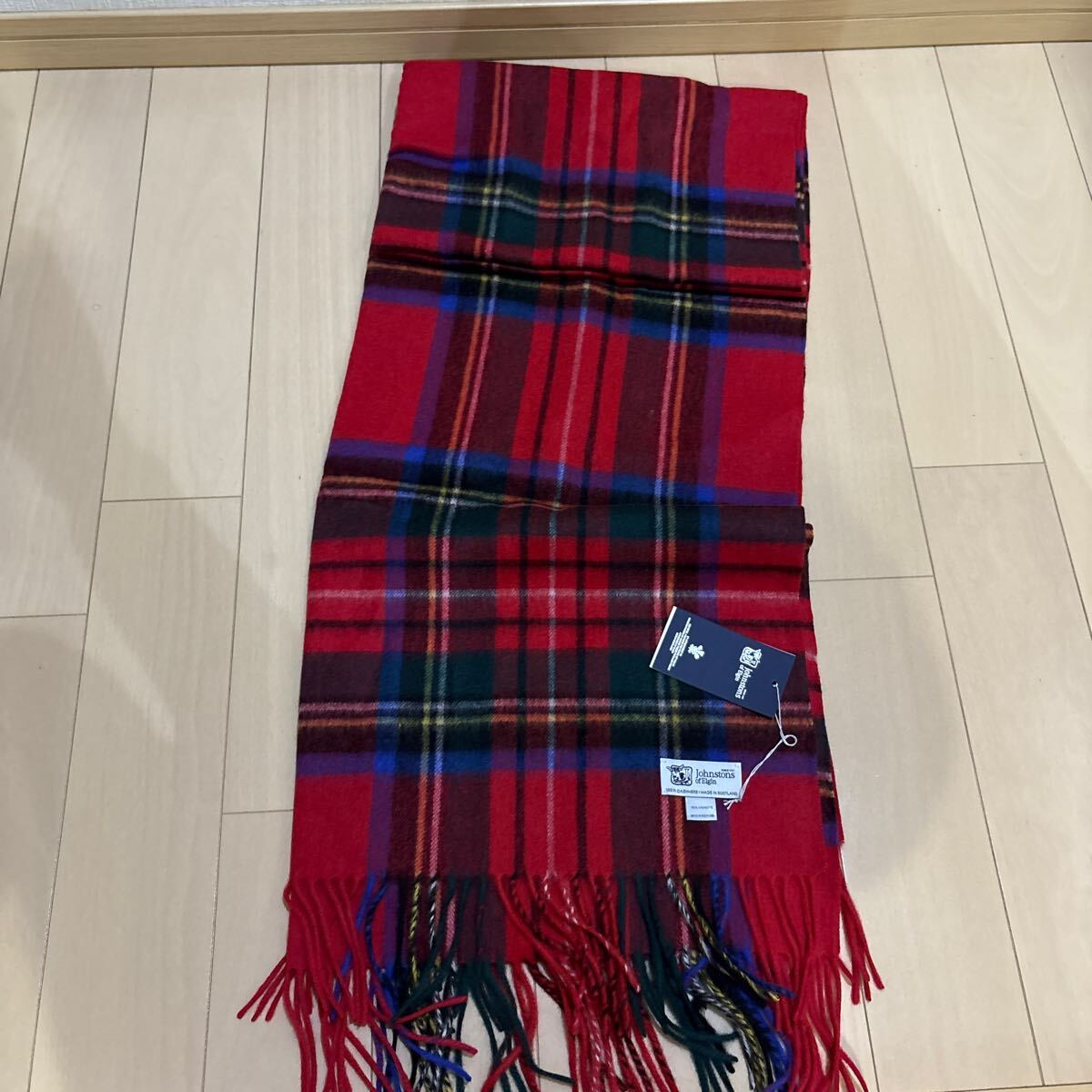 > 送料無料 未使用 JOHNSTONS ジョンストンズ マフラー ストール ROYAL STEWART カシミヤ 大判 190×70cm