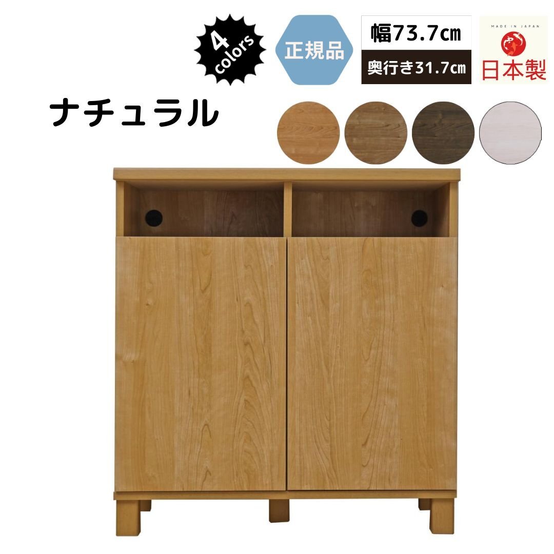 > キャビネット サイドボード 木製 2列 薄型 木目 奥行32cm 高さ78.7cm 扉付き 扉 おしゃれ 収納 棚 日本製 NC-8075CT-NA ナチュラル