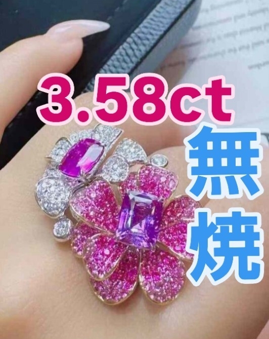 - 3.58ct無処理無焼非加熱ノーヒートパープルサファイア18Kフラワーリング モネの庭に咲く3.58ctの紫の輝日常を華やかに変える唯一無二芸術品