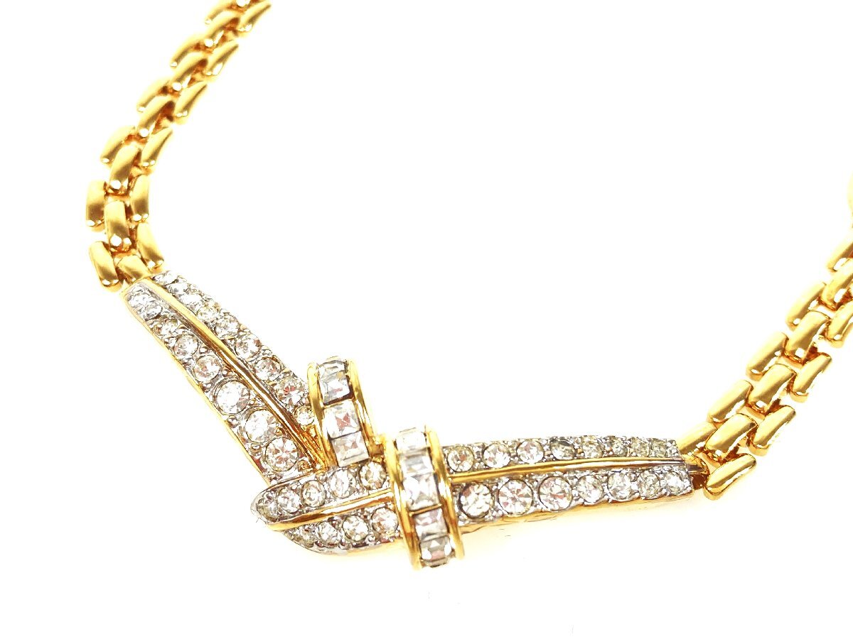- ニナリッチ NINA RICCI ヴィンテージ ラインストーン デザイン ネックレス ゴールドカラー YAS-11144