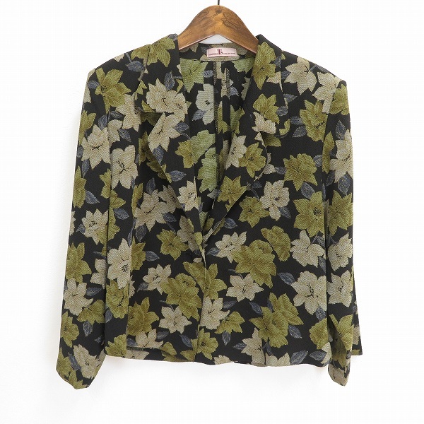- #a Ts コレクション 詩仙堂 ヒトシタムラ ジャケット 黒 緑系 マルチ ちりめん 縮緬 花柄 和柄 和装 和風 日本製 レディース 942912 k01