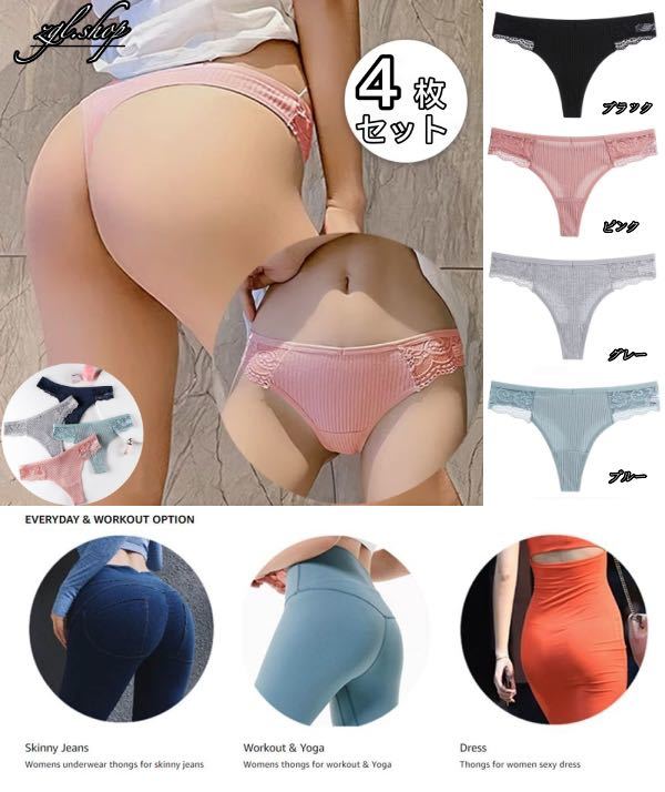 - Tバックショーツ 4枚セットレディース 綿 コットン ストレッチ フィット セクシー かわいい レース 女性 下着 パンツ Lサイズ