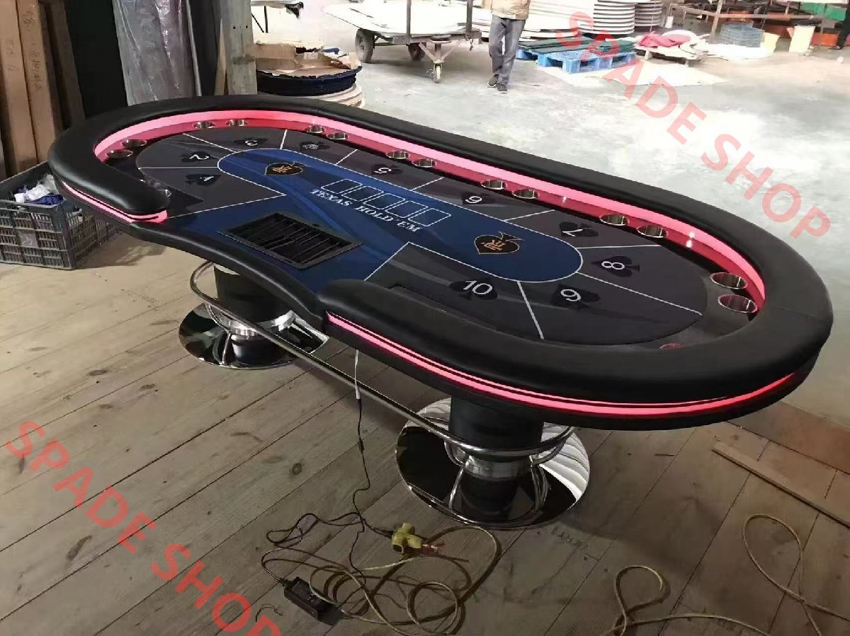 - 超豪華 10人用 ポーカーテーブル 楕円形 超高安定性ベース ホールデムサイコロ カジノ テキサスホールデム カップホルダー付き 213*106cm