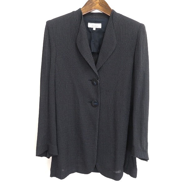 > #a レリアン Leilian ジャケット 7号 ダークグレー 濃紺 ストライプ トライアングルカラー レディース [963023] k01