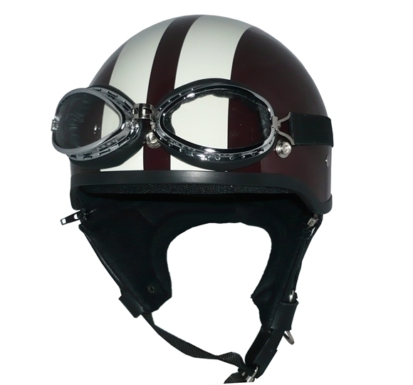 > ZK-600 装飾ゴーグル付きハーフジェット(ブラウン/アイボリー) SG公認 耳あて脱着可能! ポリスヘルメット ポリヘル