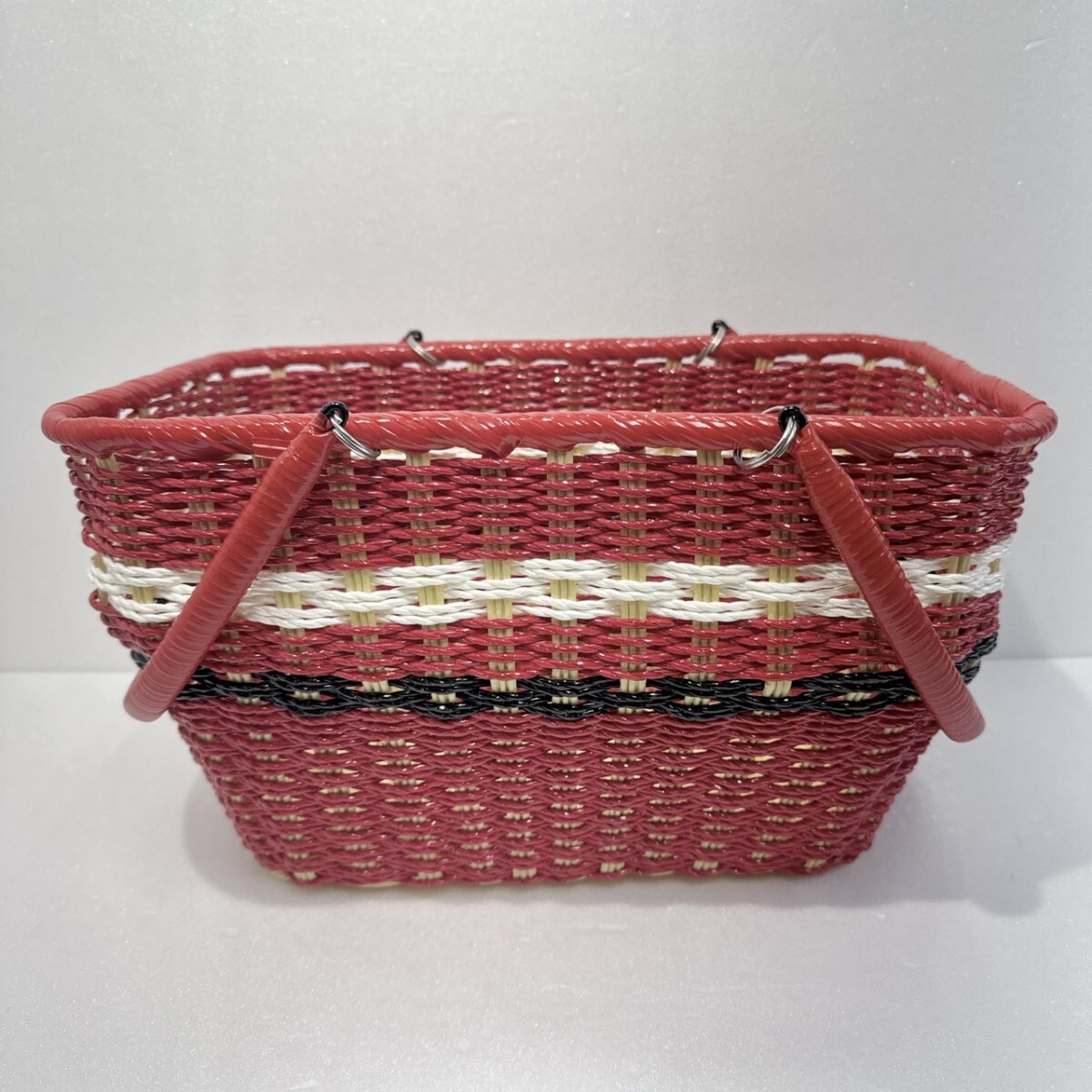 - かごバッグ 昭和レトロ バスケット ポップ 赤 レッド 籠 バッグ カゴ 小物入れ アンティーク 買い物かご