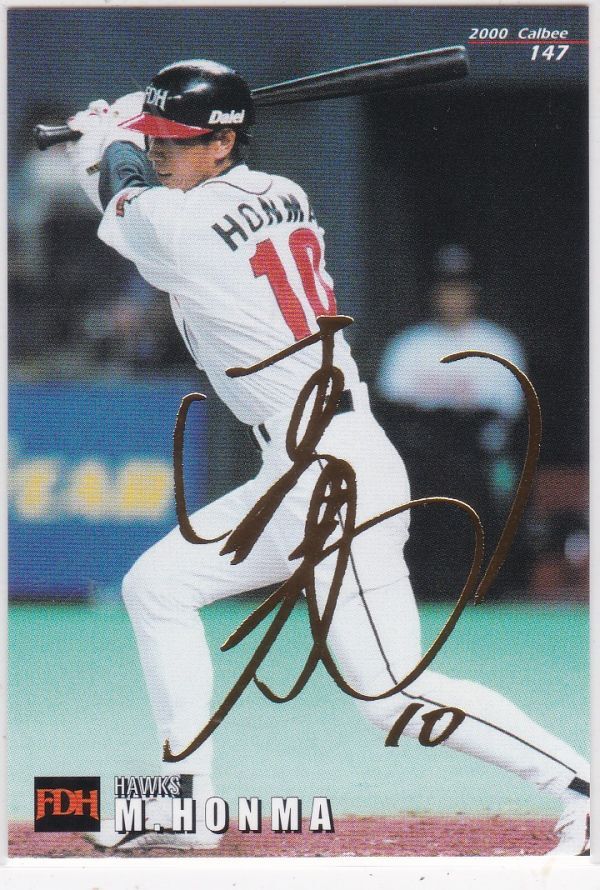 - ●2000カルビー 【本間 満】 プレ版:金箔押サインパラレル No.147:ホークス R3