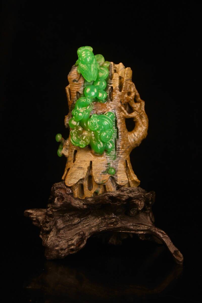 - ◆珍蔵◆中国古美術 清時代 古寿山石 雅安緑彫り如意禅 細密細工造 置物 擺件 古賞物 骨董品 時代物 A68