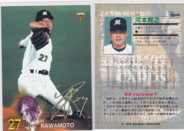 - ●1999BBM 【河本 育之】 金色サインパラレル No.264:ロッテ R