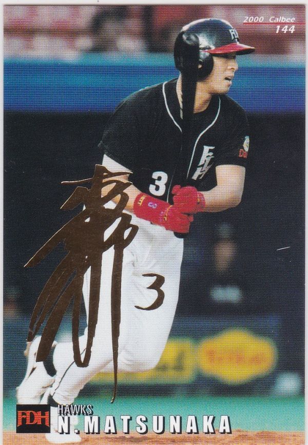- ●2000カルビー 【松中 信彦】 プレ版:金箔押サインパラレル No.144:ホークス R2