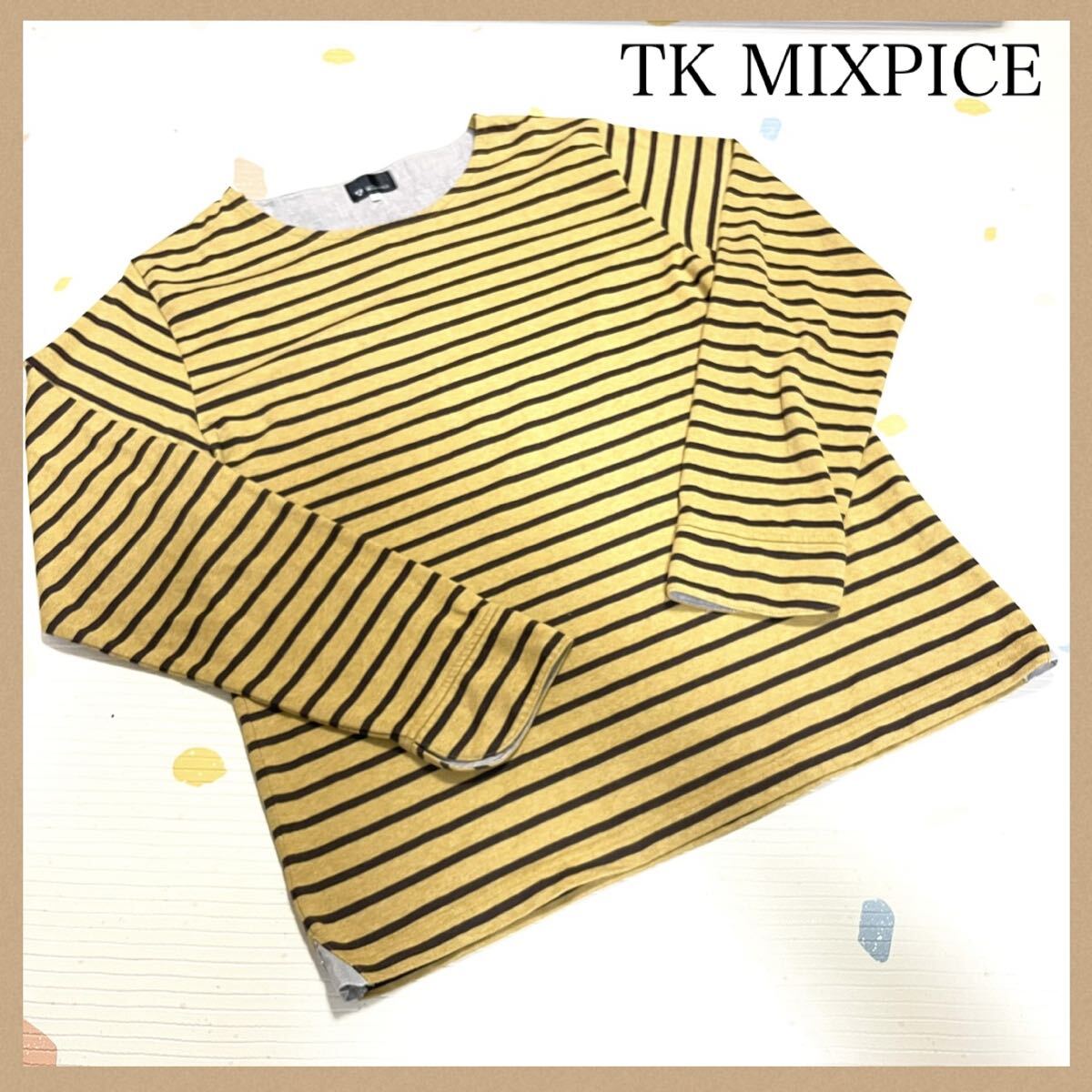 - TK MIXPICE 長袖カットソー XLサイズ ボーダー柄 イエロー ブラック 黒