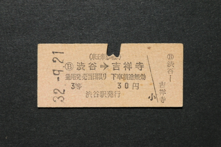 - 京王帝都電鉄 乗車券 渋谷←→吉祥寺 3等 30円
