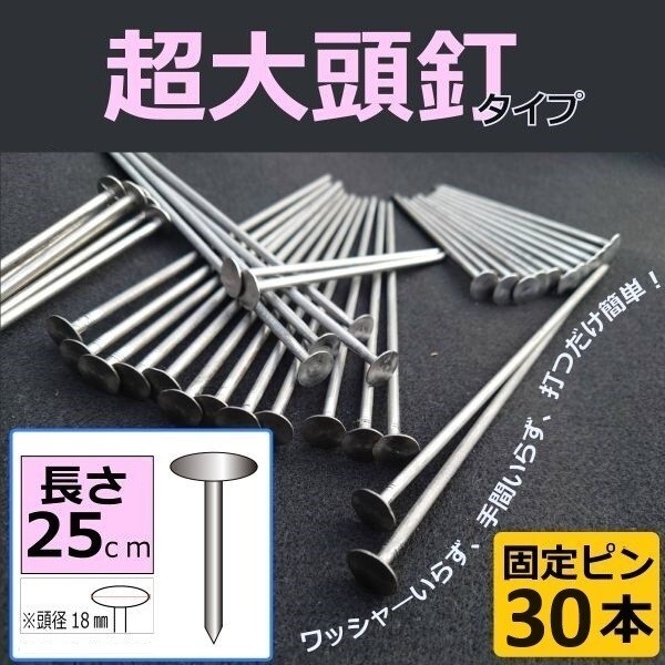 > ■即決■(超大頭釘タイプ25cm30本) 固定ピン 雑草防止 除草 厚手 留め具 防草シート用 止め 施工 ロング■