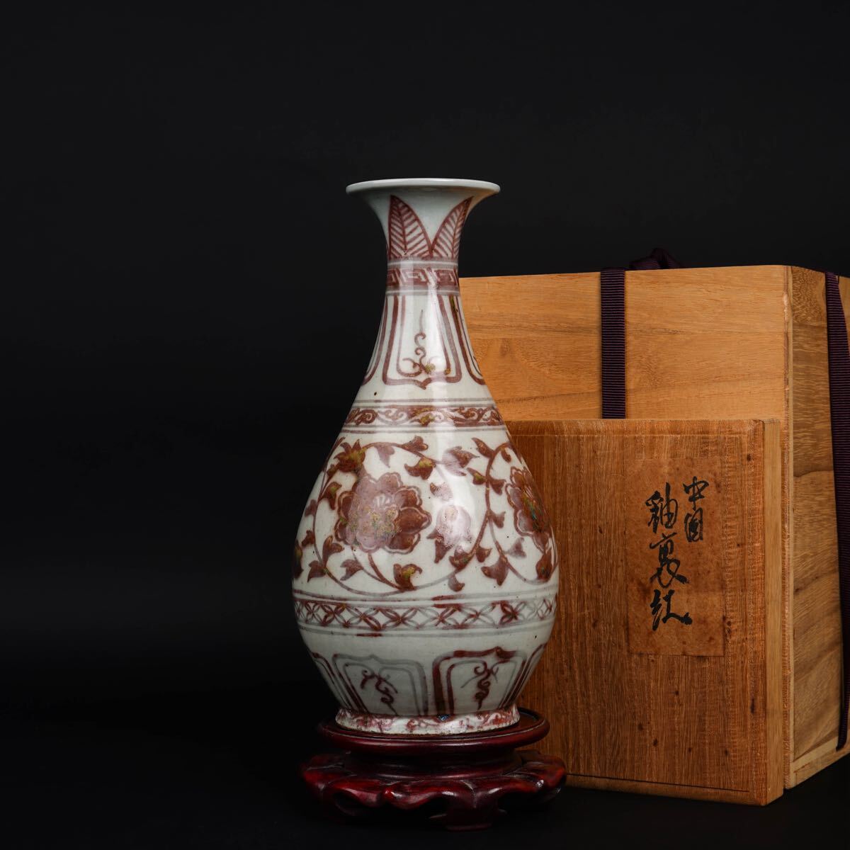 > 【後】FC011 染付釉裏紅花入 古美術 骨董品 古玩 時代物 古道具 中国美術品 朝鮮美術品 日本美術品