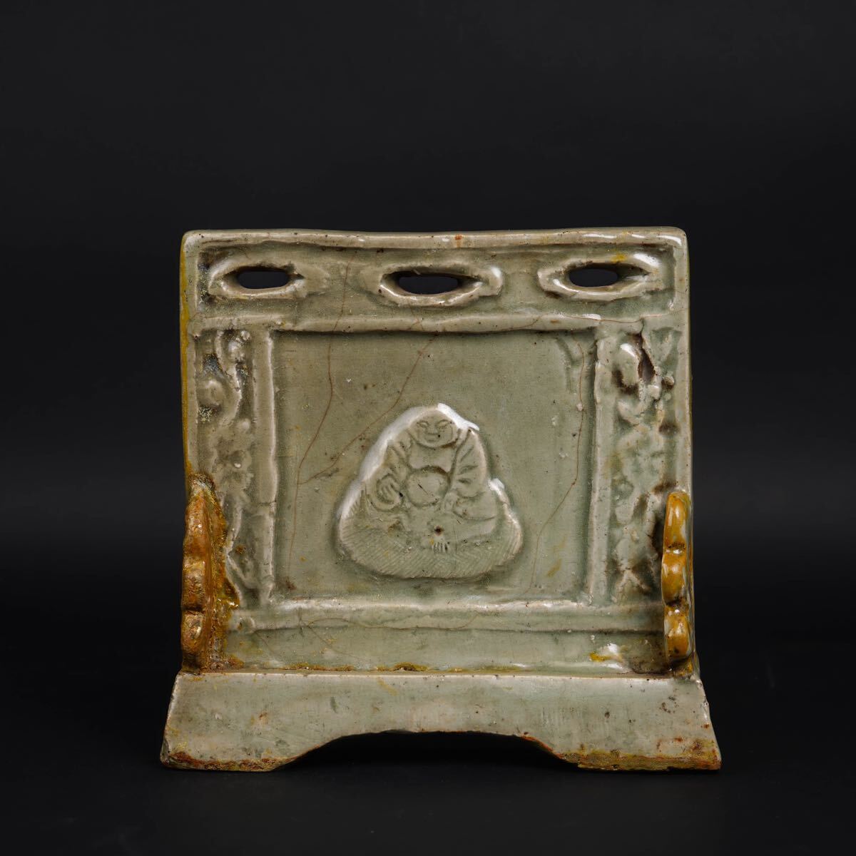 - 【後】FC014 龍泉青磁彫弥勒硯屏 古美術 骨董品 古玩 時代物 古道具 中国美術品 朝鮮美術品 日本美術品