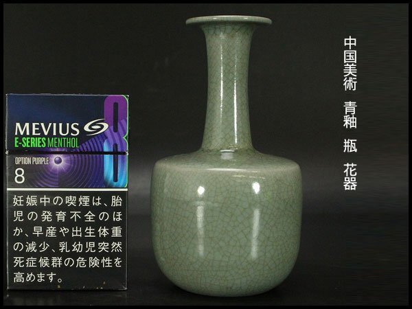 > 【銀閣】中国美術 青釉 瓶 高12.5cm 花器 旧家蔵出 送料無料(YC36)
