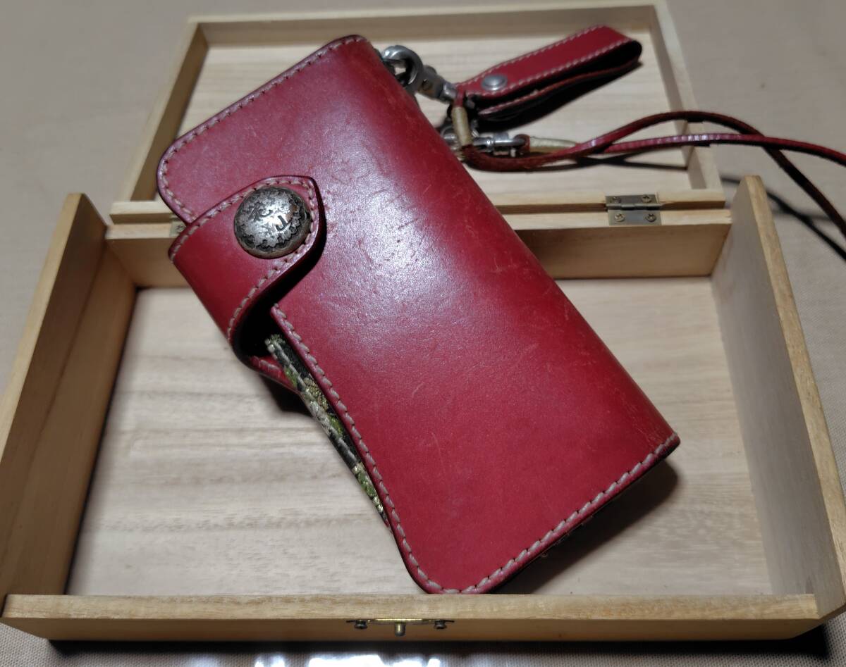 - ●DEGNER●流儀圧搾●花山レザーウォレット●RED●七宝●元箱付●中古品●