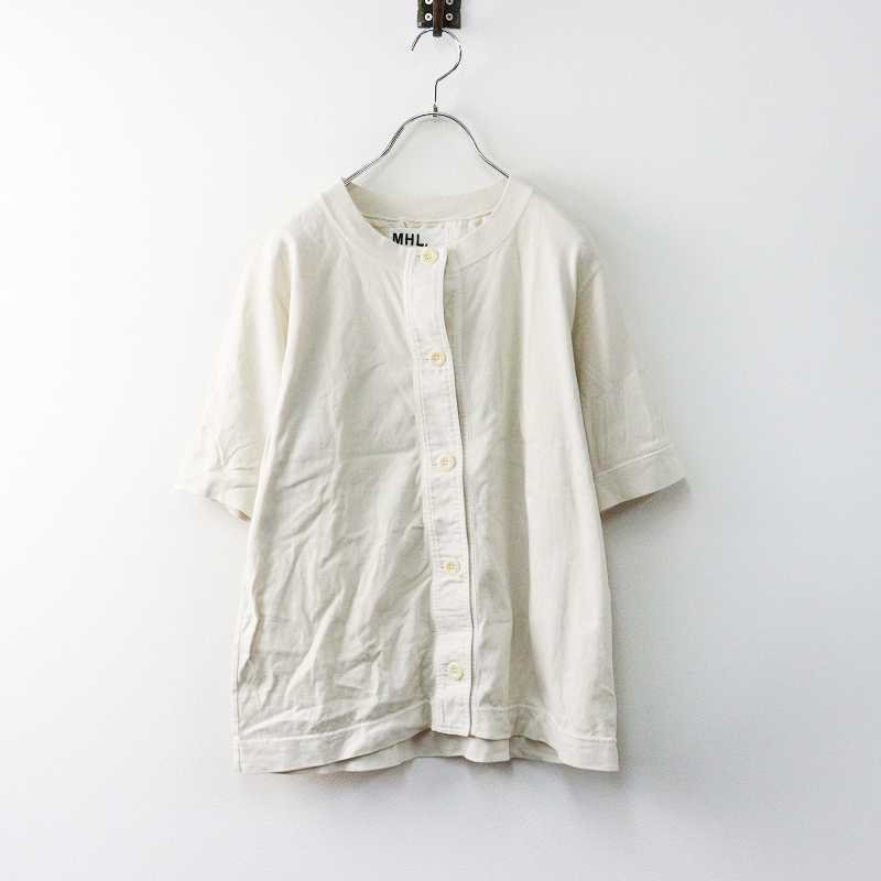 - エムエイチエル MHL マーガレットハウエル MARGARET HOWELL コットンジャージー ノーカラー シャツ 2|オフホワイト【2400014630848】