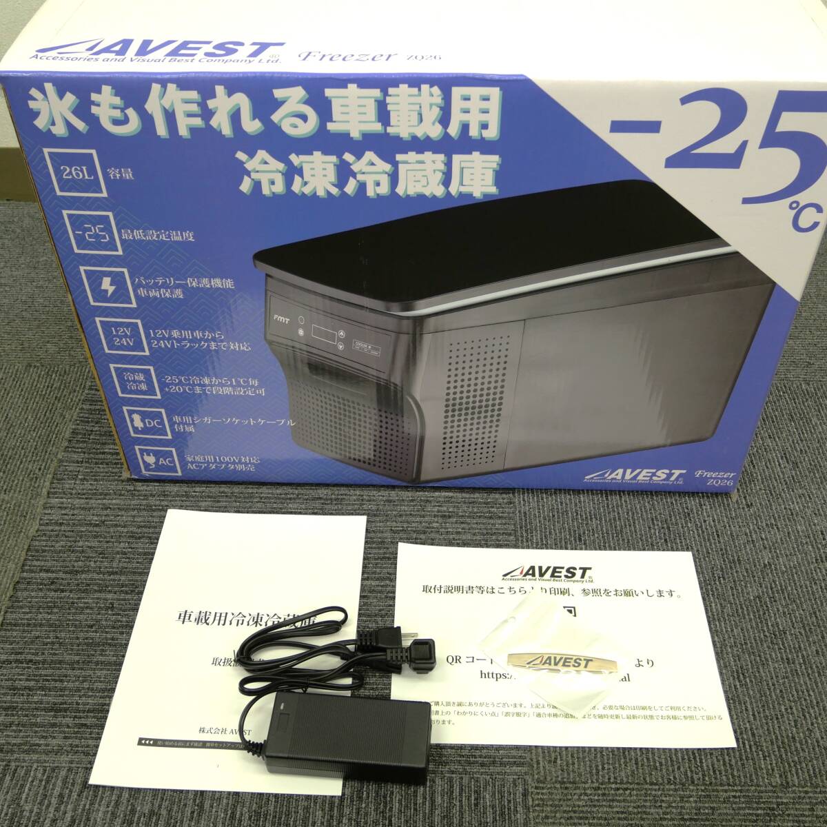 > [車載&家庭用] ポータブル 冷凍 冷蔵庫 26L コンプレッサー冷却 12V/24V 100V電源付 ガラス天板 AVEST アベスト 未使用 匿名配送160サイズ
