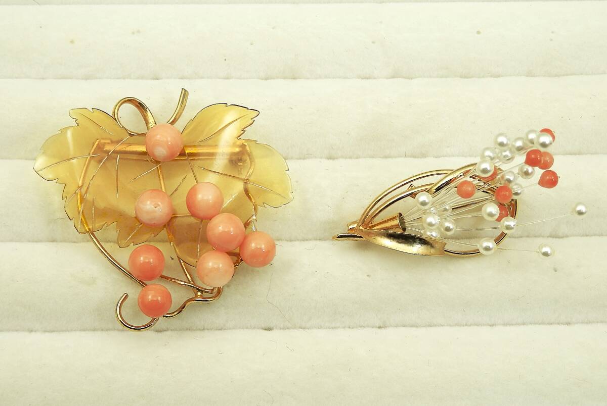 - 珊瑚 ブローチ 2種 約11g 現状品 売り切り