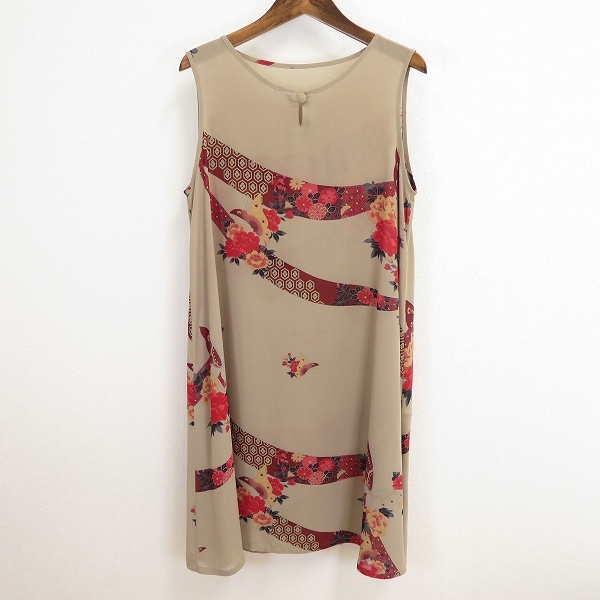 - #s 詩仙堂 ヒトシタムラ チュニック ノースリーブ ベージュ 花柄 蝶 和柄 和風 和装 和服 日本製 シースルー 933581 k01