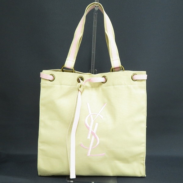 - #ab イヴサンローラン Yves Saint Laurent トートバッグ ベージュ ピンク キャンバス ロゴ 刺繍 レディース [962566] k01