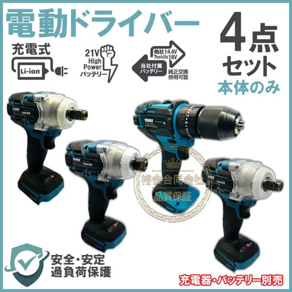 > ★送料無料・30日間保証付き★電動ドライバー 4台本体セットまとめ コードレス 充電式 ブラシレスモーター搭載 電動工具セット