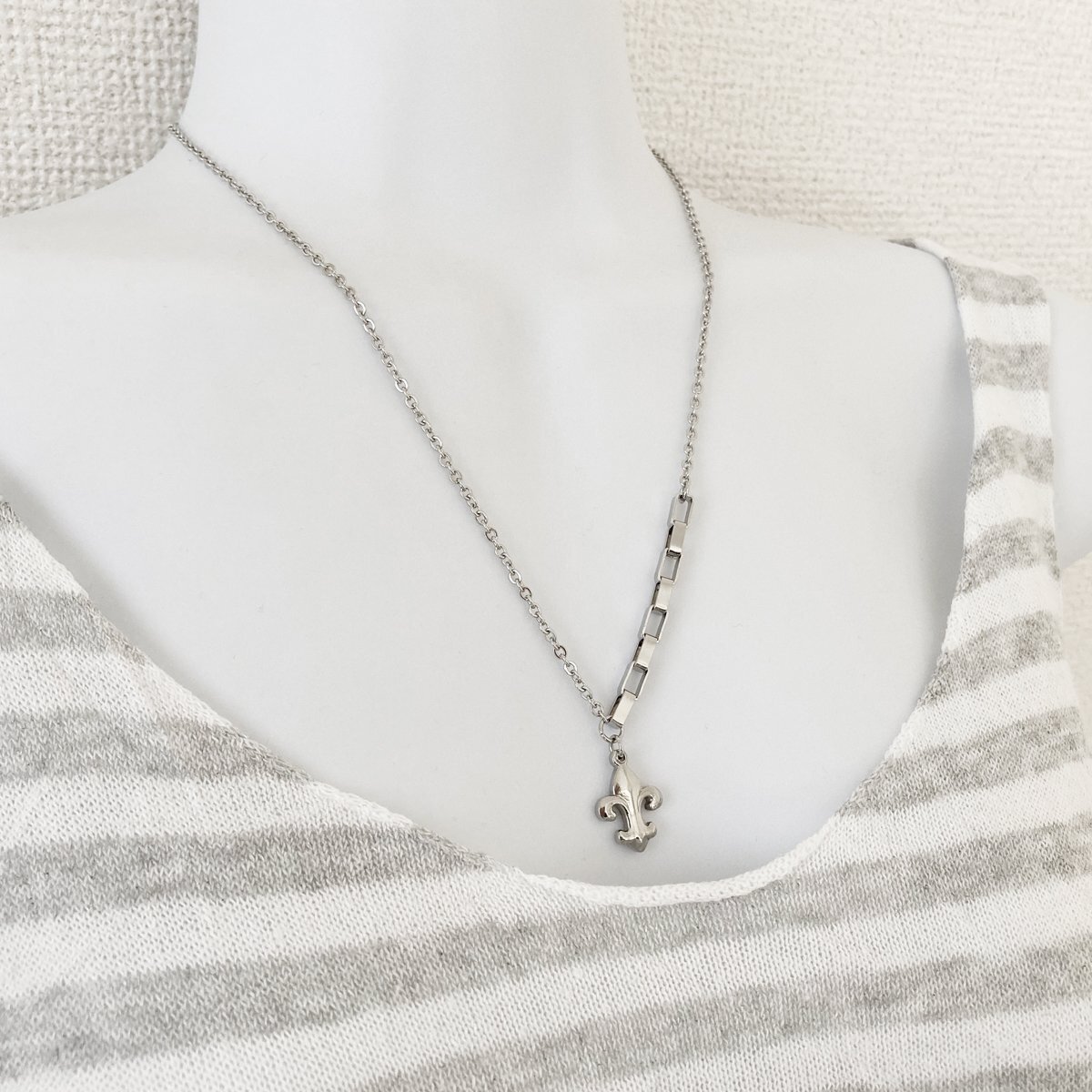 - チェーンがお洒落なステンレスネックレスミニ百合の紋章 チャームネックレス 45cm ST122