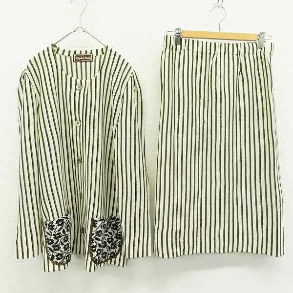 ◎商品名(タイトル):サイトウトヨコ 斉藤都世子 セットアップ スカートスーツ ニット ストライプ ロゴボタン ラメ [x972876]◎ブランド名:サイトウトヨコ (斉藤都世子)◎アイテム名:セットアップ スカートスーツ◎サイズ:-◎性別:レディース◎カラー:アイボリー系 オフホワイト系 ミックス◎素材:表記なし◎実寸サイズ:(トップス)肩幅約 38cm・袖丈約 61cm・着丈約 65.5cm・胸囲約 50cm×2 (スカート)ウェスト約 37cm×2〜ゴム・ヒップ:約 47cm・スカート丈約 68cm◎商品コメント:★当店の商品はすべてリユースアイテムとなります。特質上、些細なダメージは記載しておりませんので着用に問題のない使用感、着古した雰囲気などはご了承くださいませ。◎コンディションレベル:やや傷や汚れあり◎コンディション備考:首内側に汚れがございます(画像参照)キーワード/アクイール/古着/used/ビンテージ/ヴィンテージ/レトロ/昭和/ノーカラー/ジャケット/ノーカラージャケット/スカート/ロング/タイト/ロングスカート/タイトスカート/ニットジャケット/ニットスカート