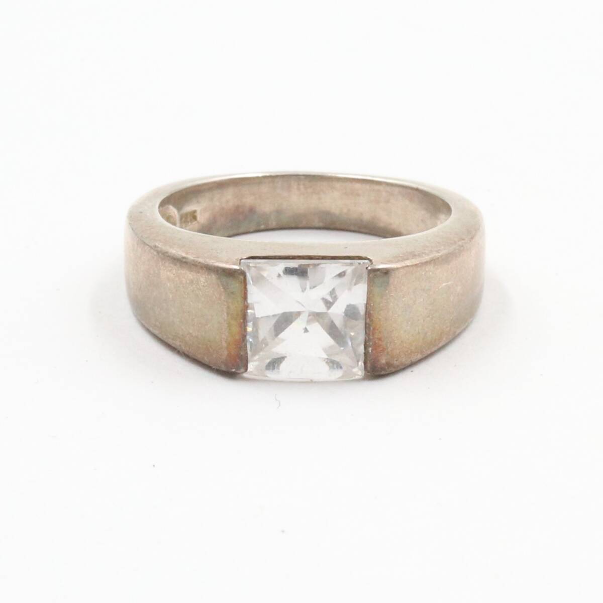 > ★【ノーブランド扱い】 シルバー 925 ラインストーン リング 指輪 サイズ約10号 小物 アクセサリー レディース シルバー系