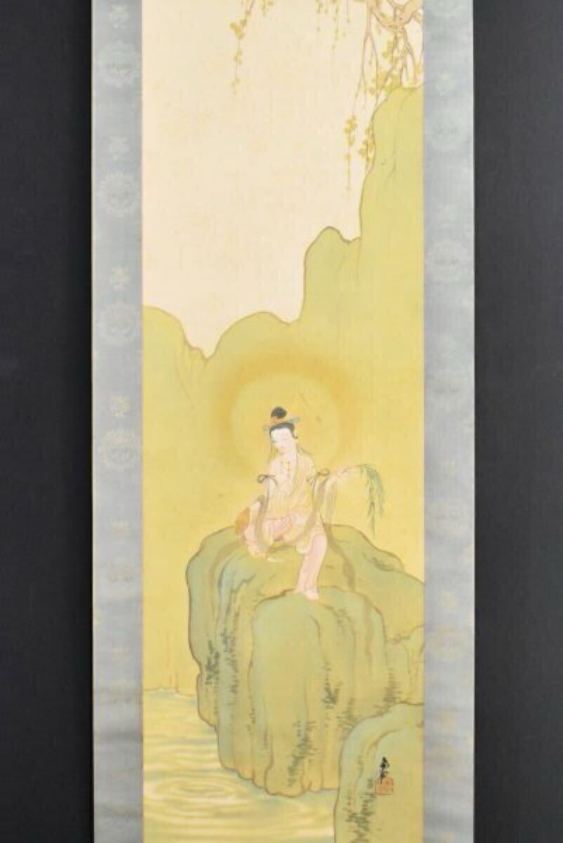- K5175 真作 尾竹国観「楊柳観音」絹本 共箱 二重箱 肉筆 小堀鞆音門下 仏画仏教美術 中国 日本画 絵画 茶掛 掛け軸 掛軸 古美術 新潟の人