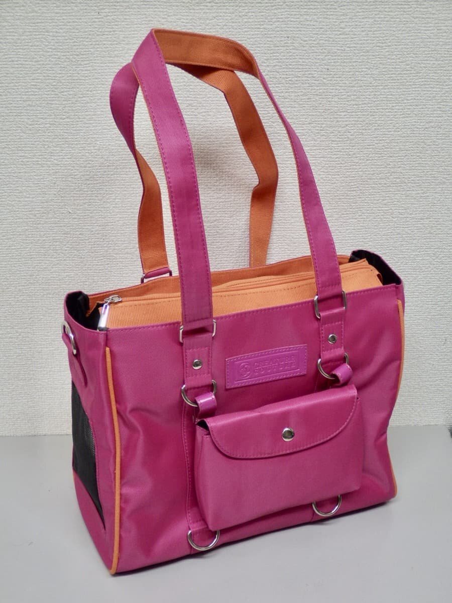 > 未使用・訳アリ!CREATURE COUTURE ペットキャリーバッグ◆ミニポーチ付◆ピンク×オレンジ◆小型用◆クリーチャー・クチュール