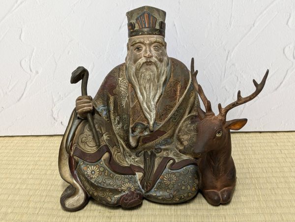 - Mn3539 江戸時代 古銅 着彩 寿老人像 置物 7kg 日本金工美術作品 床荘床飾 七福神 茶道具