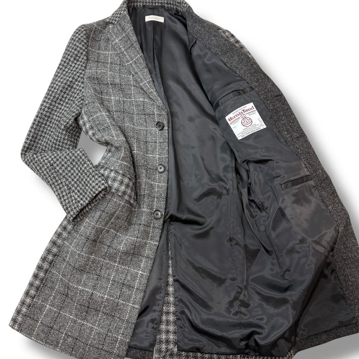 > 1170美品 希少L◎定価約6万 ビューティーアンドユース ×ハリスツイード Harris Tweed 千鳥格子柄 クレイジーパターン チェスターコート